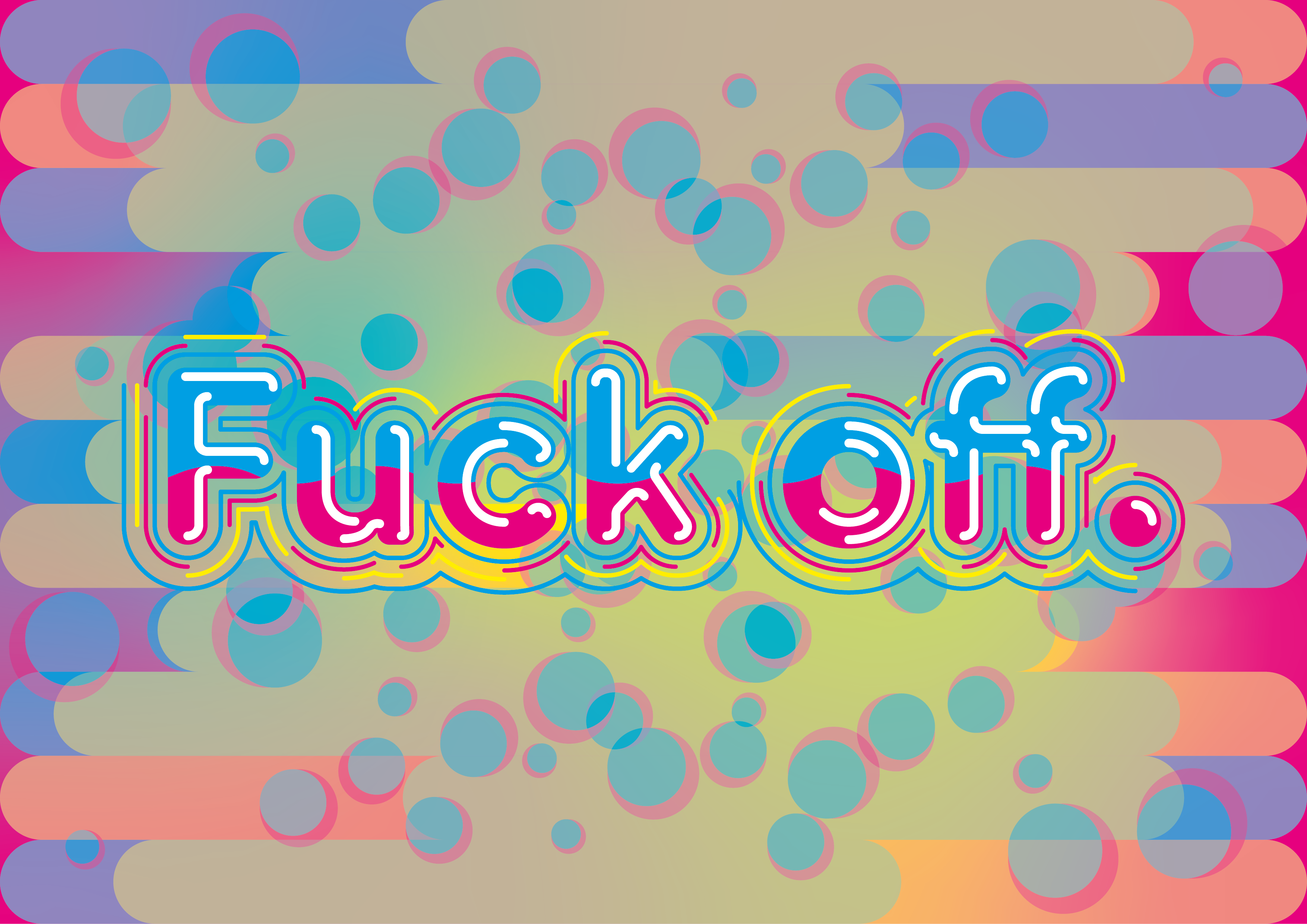Using different sayings and wording using the playful technique in the design spares the severity of the statement. Using curse words in a joyful way almost strips away the malice behind the wording to read the working at face value as different letters.