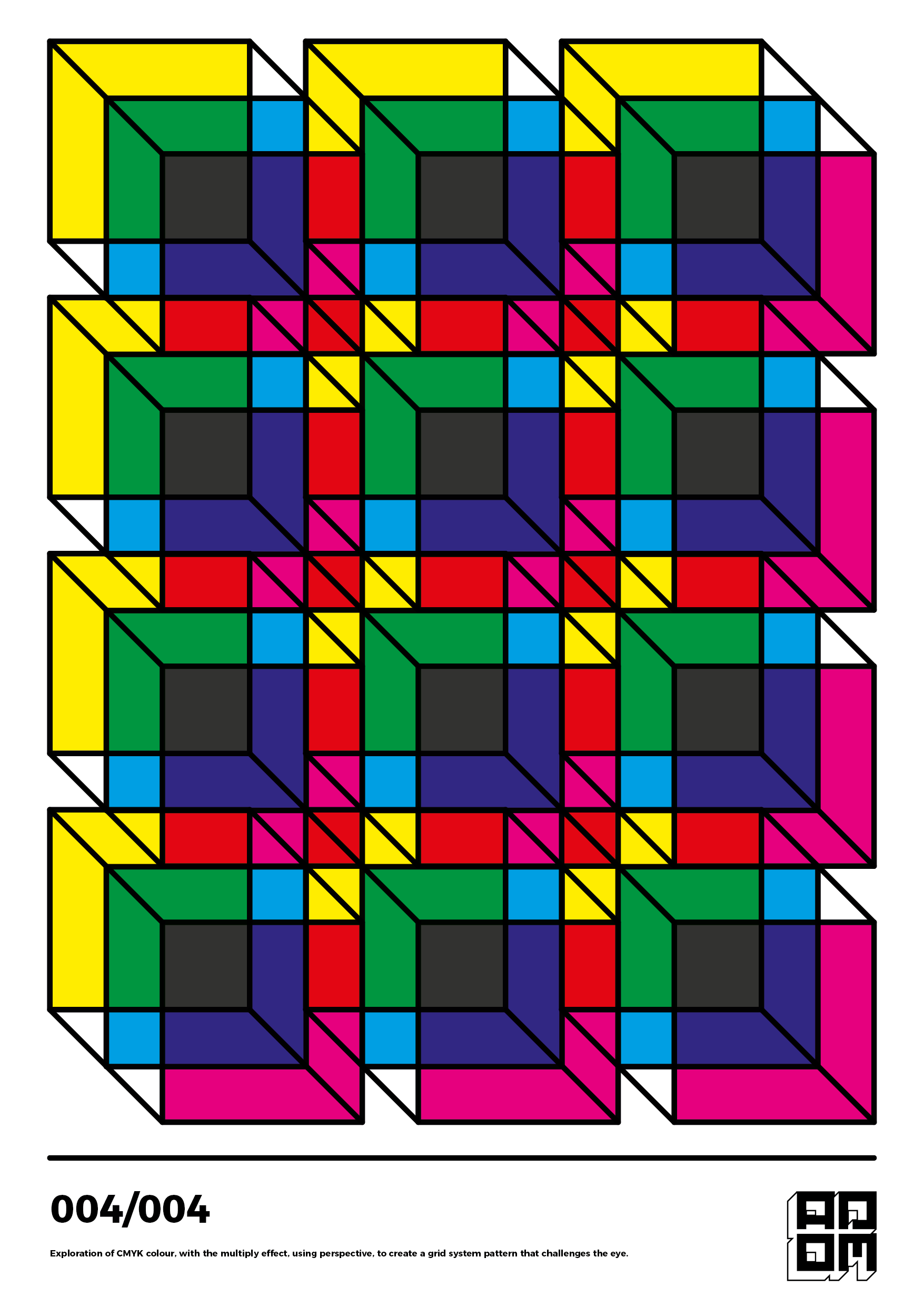Cyan — Magenta — Yellow — Key is a colour in print experiment within design, through illustrative means, using depth of perception to create a unique connection with the eye and the way you communicate with the artwork. Using technical approaches within the design principles, the artwork provides a development of layered shapes and colours that can translate into the printing process to sample both print and design in one body of work.
