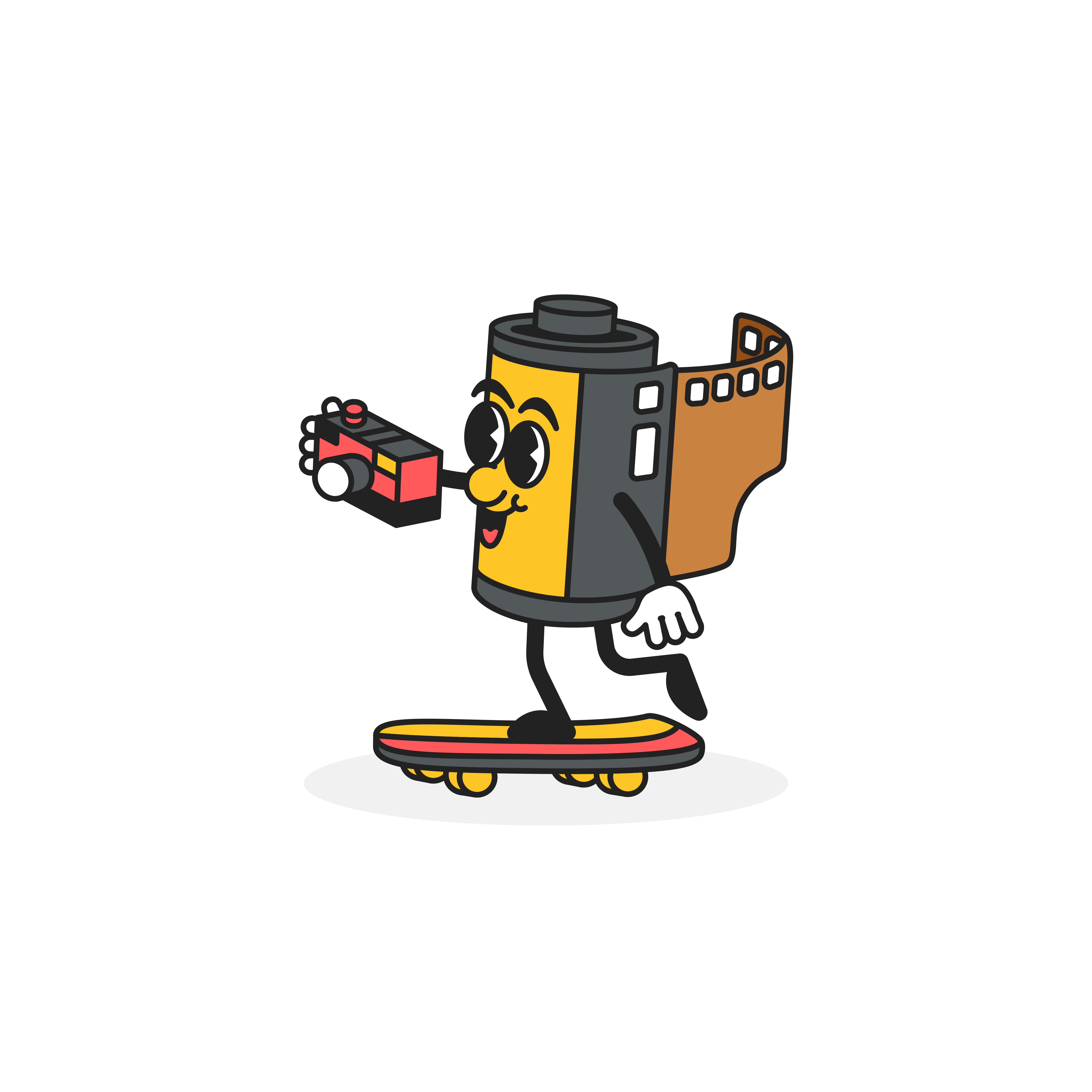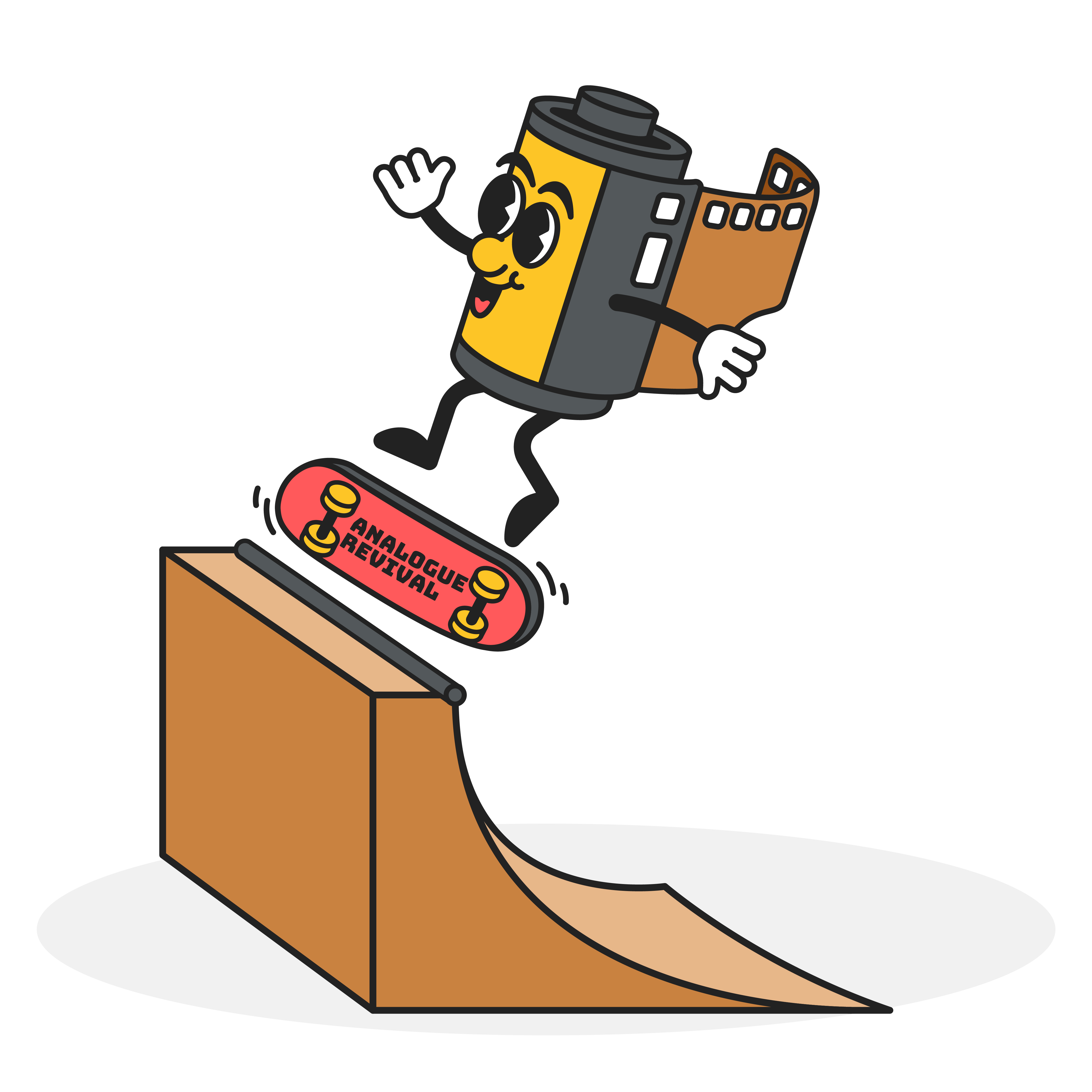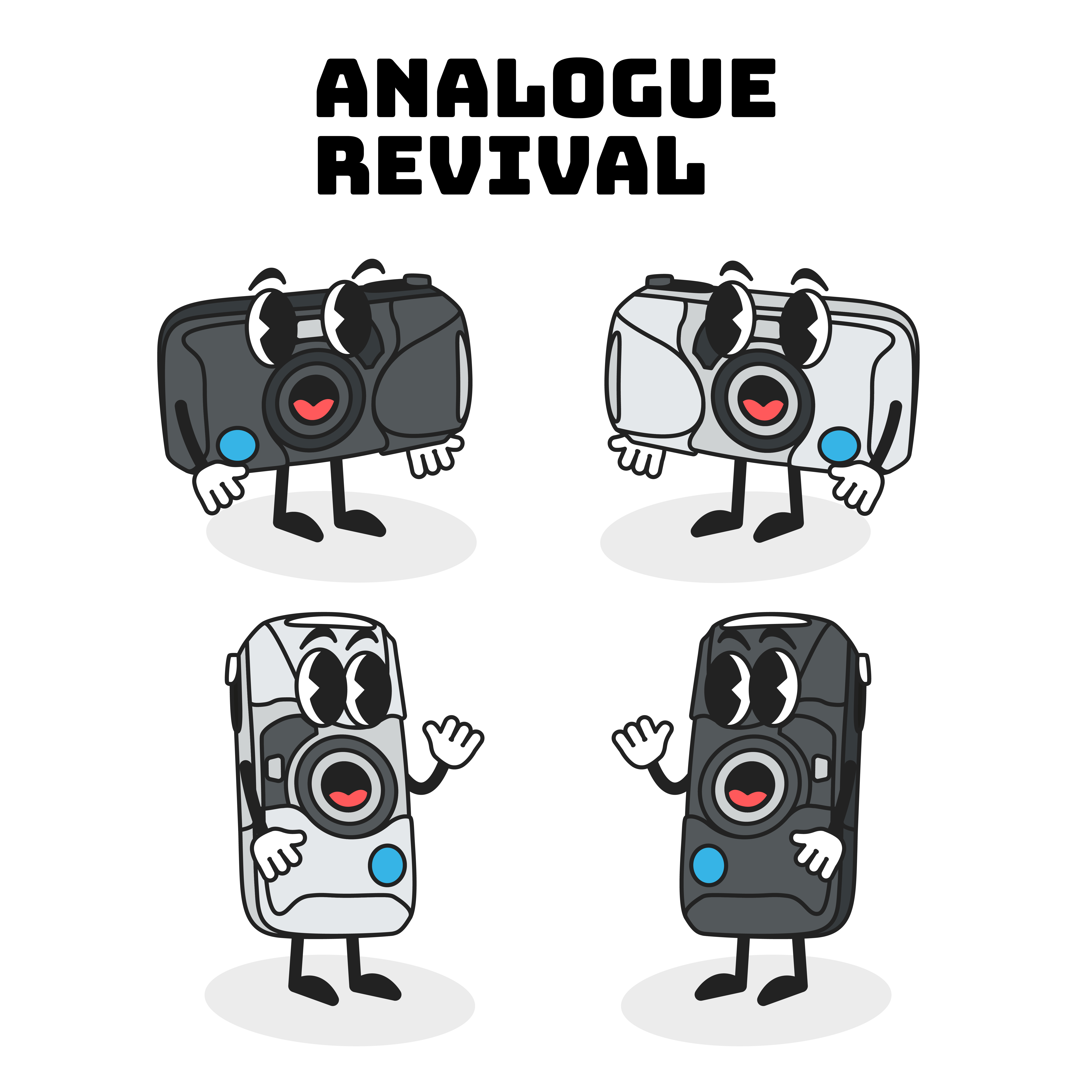 Analogue Revival branding includes a slab sans serif type logo that is paired with a character derived from a creative take on an old roll of 35mm film. Closely working with the owner of the store, a direction was developed their brand identity to exactly how they imagined it. Focusing the colour scheme on something that brought a sense of professionalism and fun with a retro feel.