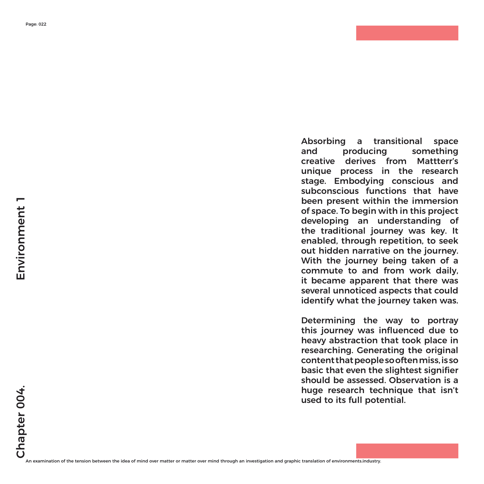 So, to limit creativity into visually aesthetic work as being creative is totally illogical. Logicality, sets up a framework for innovation to take over, whilst still holding narrative, for substance to flood throughout creative outputs. Embodying environments you are in throughout life, forms the way in which you respond to situations. Social conditioning is a huge sociological process that upholds the process of mattterr. The way in which things are perceived are of huge interest in the development of creativity, and how it influences; consciously and subconsciously, the mind into projecting out ideas. For the most part, growing up as a 90s baby and a millennial teen has been unique to the building blocks of mattterr. Life experience and the approach taken throughout practice, has enabled me to embark on refining an ideology that can now be held as the inspiration behind creativity.To apply Mattterr as a principle in different subject areas can be tricky to explain from my perspective as not many understand the intuition behind my thought timeline.