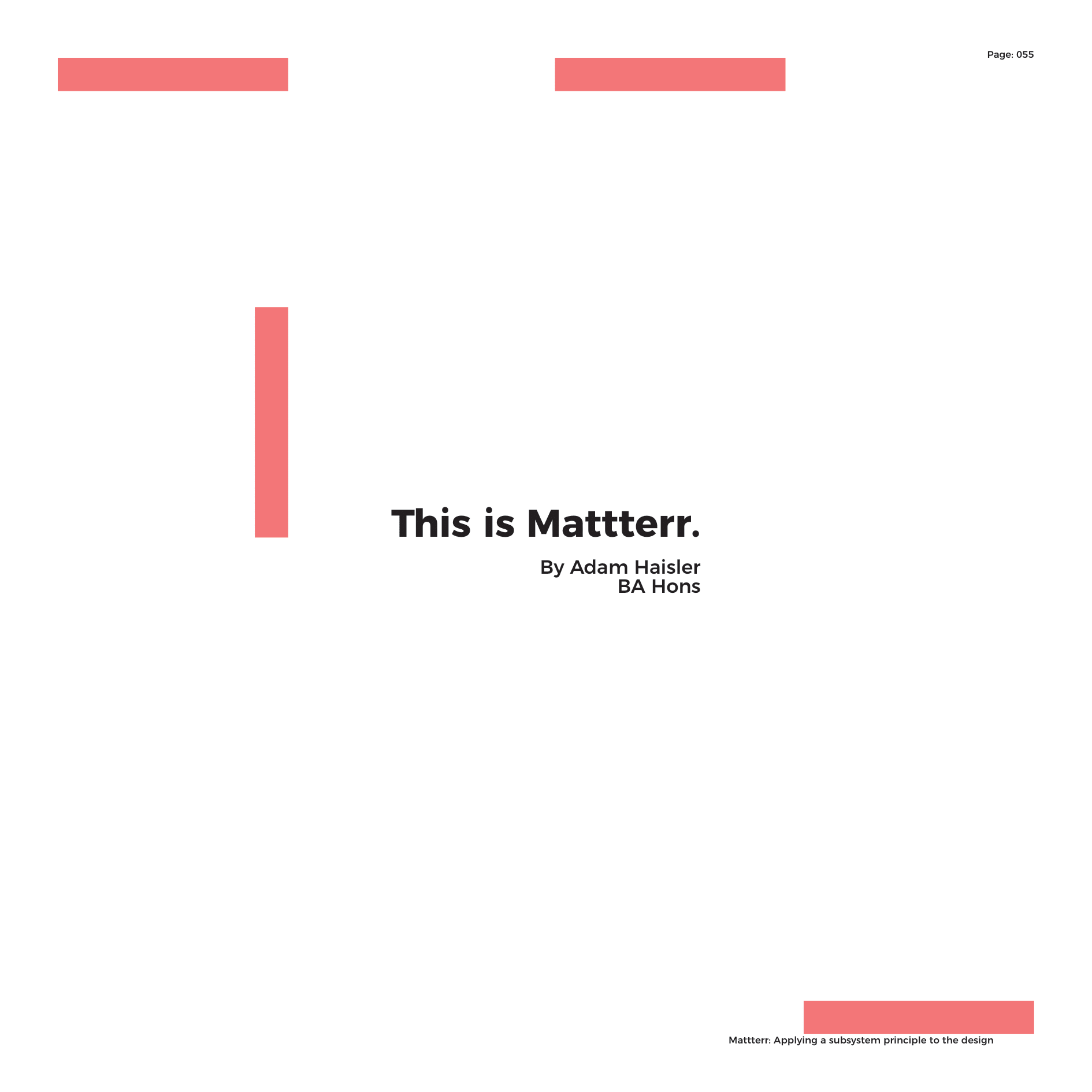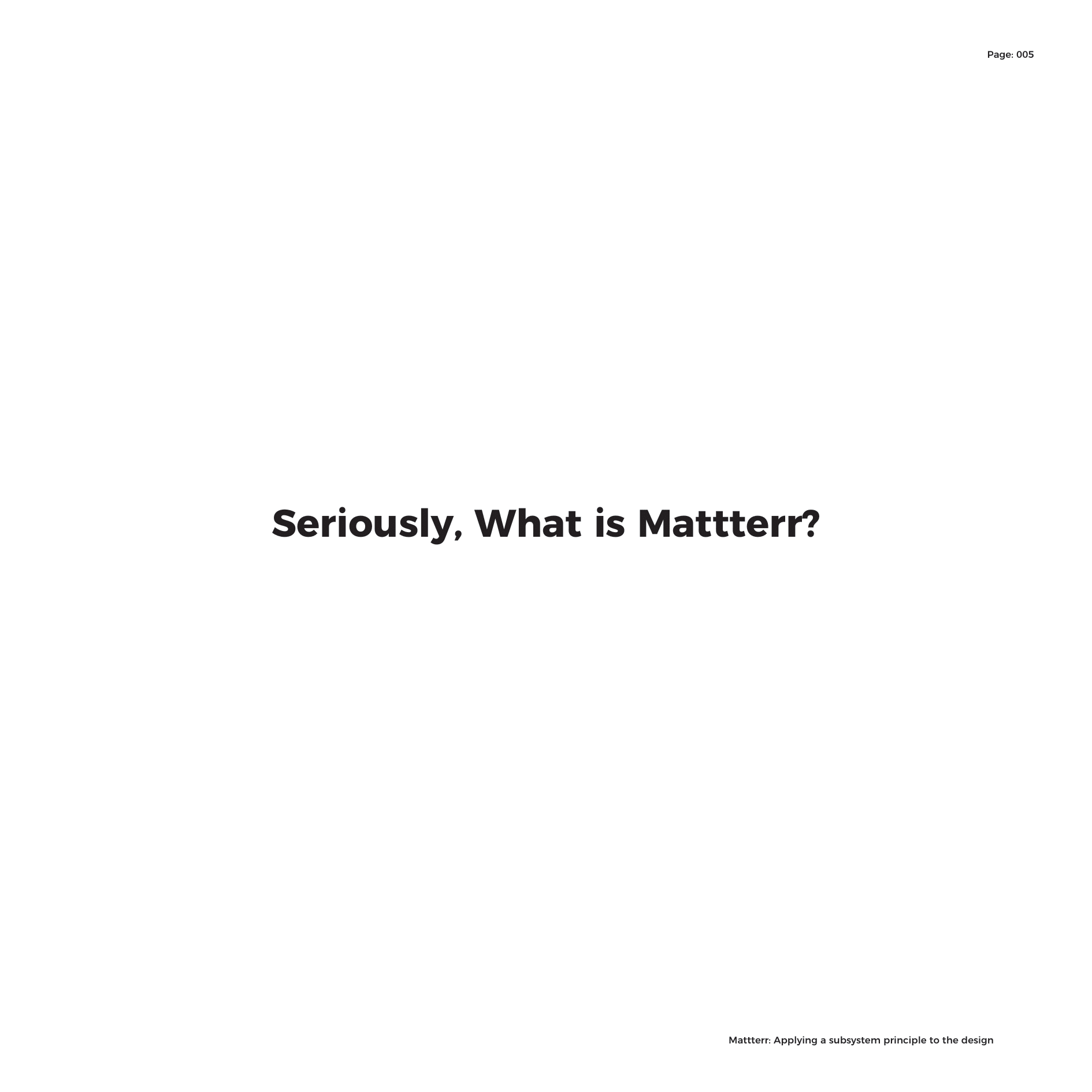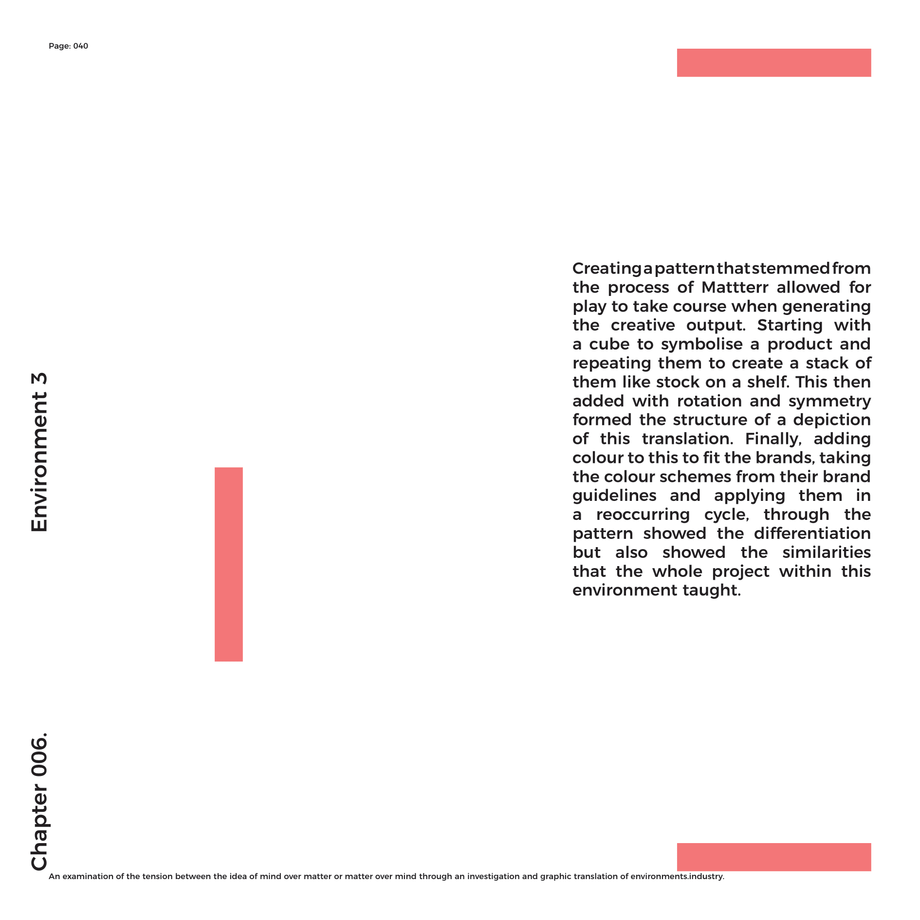 Being a lineal thinker that never has an end-point, working on projects always arrives at different outcomes due to the content behind the project and the direction the specifics of the project push you into. Immersing yourself into a brief, surrounding yourself with research and different influences that either relate or don’t directly, still enable the process of conditioning to take effect. Mattterr is the ideology that this process, matched with other logic and thought provoking thesis enable a framework to help aid the elements of indecision within working.Bauhaus principled form follows function. Mattterr principles creativity is an embodiment of your environment.