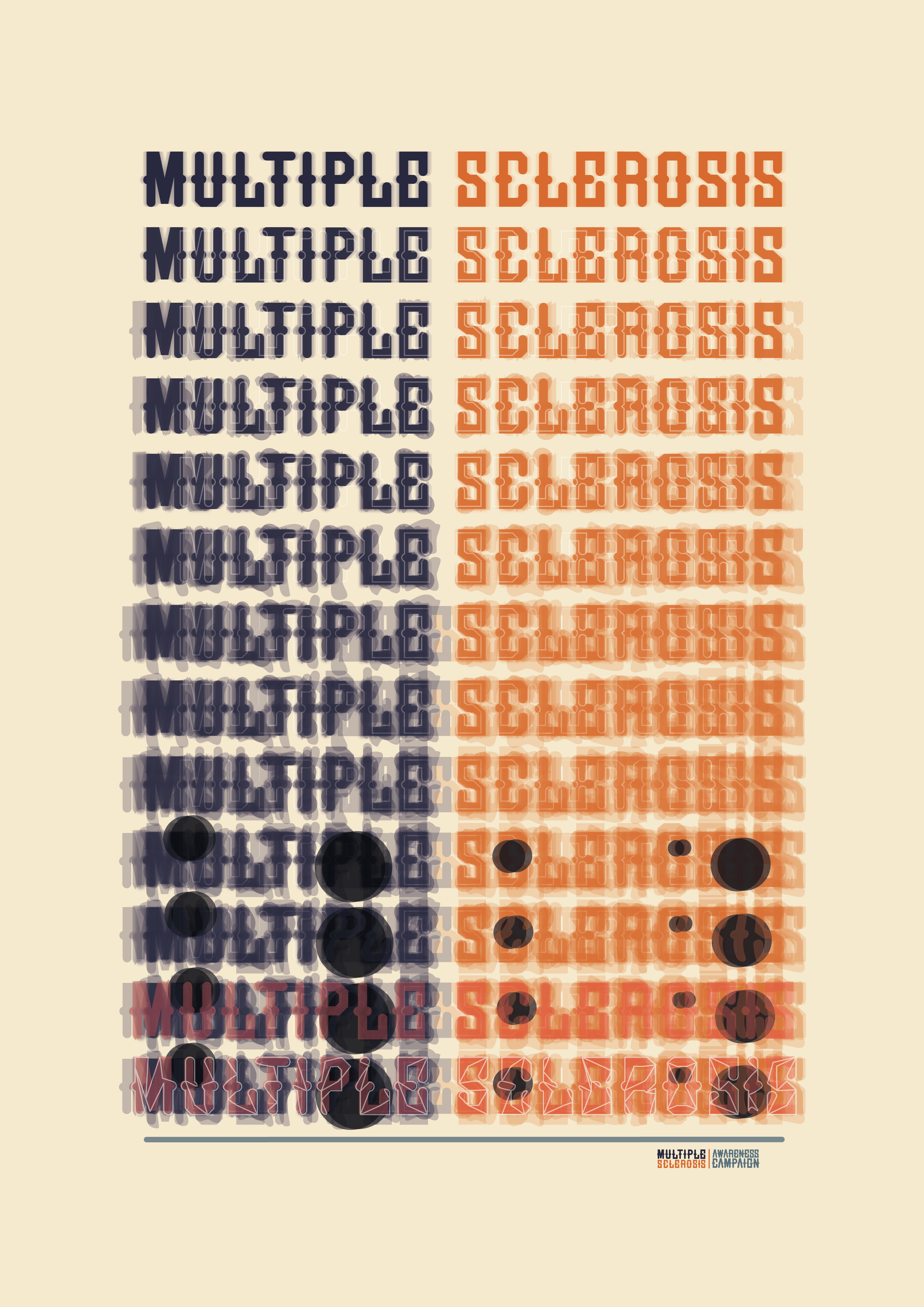 This campaign was created to directly tell the audience exactly what the symptoms are of Multiple Sclerosis. The idea of first creating a typeface that has an additional shape or form within the letter, was a massive factor of the campaign so that it could represent the degenerating signs of the disease from the swelling that can occur in the limbs of MS sufferers.